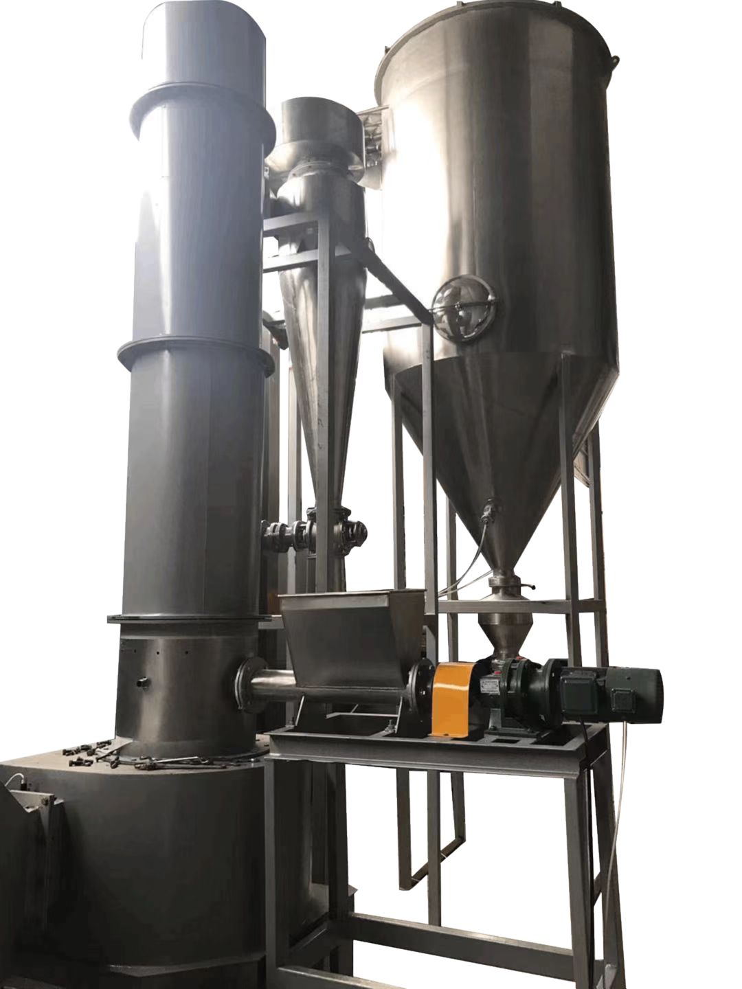 為解決化學(xué)工業(yè)中黏性膏狀物料的干燥問(wèn)題,1970年研制成功了旋轉(zhuǎn)閃蒸干燥機(jī),但是“70”型旋轉(zhuǎn)閃蒸干燥機(jī)有許多不足之處,主要是粉末容易進(jìn)入高溫區(qū),極易造成物料過(guò)熱凝聚而變質(zhì),旋轉(zhuǎn)部件的穩(wěn)定性差,1978年對(duì)“70”型進(jìn)行了改造,“78”型雖然有較大的進(jìn)步,但也存在粉末床層不穩(wěn)定,出口溫度和產(chǎn)品殘余水份波動(dòng)等缺點(diǎn),1983年對(duì)“78”型又進(jìn)行了一次大的改進(jìn),現(xiàn)在我們所見(jiàn)到的設(shè)備基本是經(jīng)過(guò)兩次大的結(jié)構(gòu)...